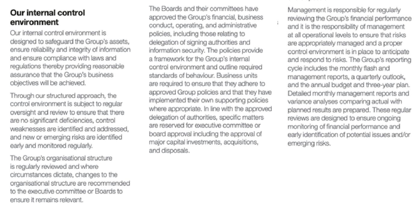 The report should describe the roles of the board, audit committee, and senior management in the internal controls of the company, including the following: