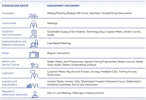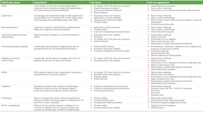 The report should describe the policy and strategy for stakeholder engagement, including :