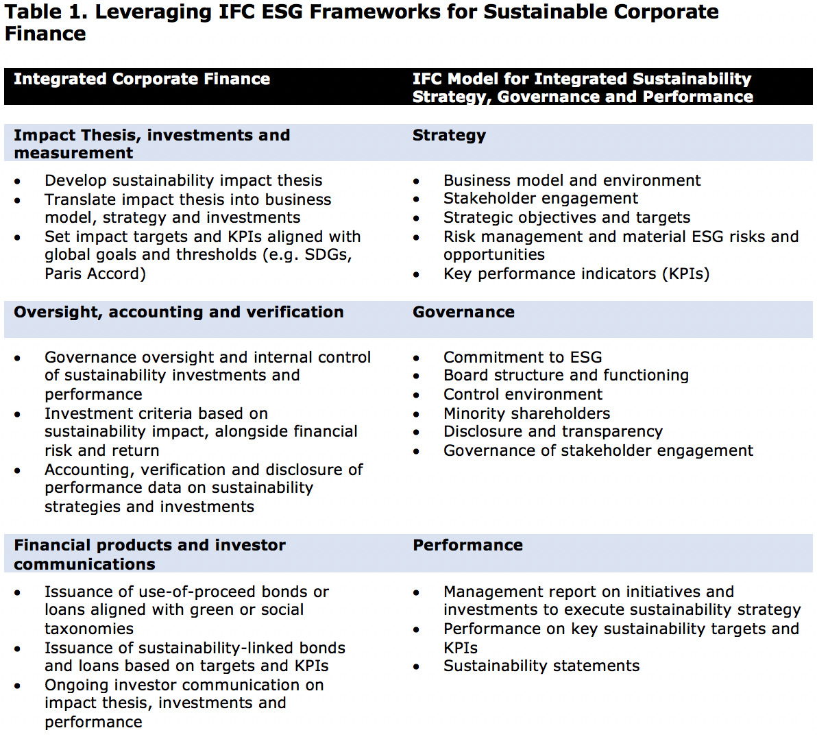 The IFC Framework prepares companies for the issuance of sustainability-linked finance by promoting a comprehensive and integrated approach to: